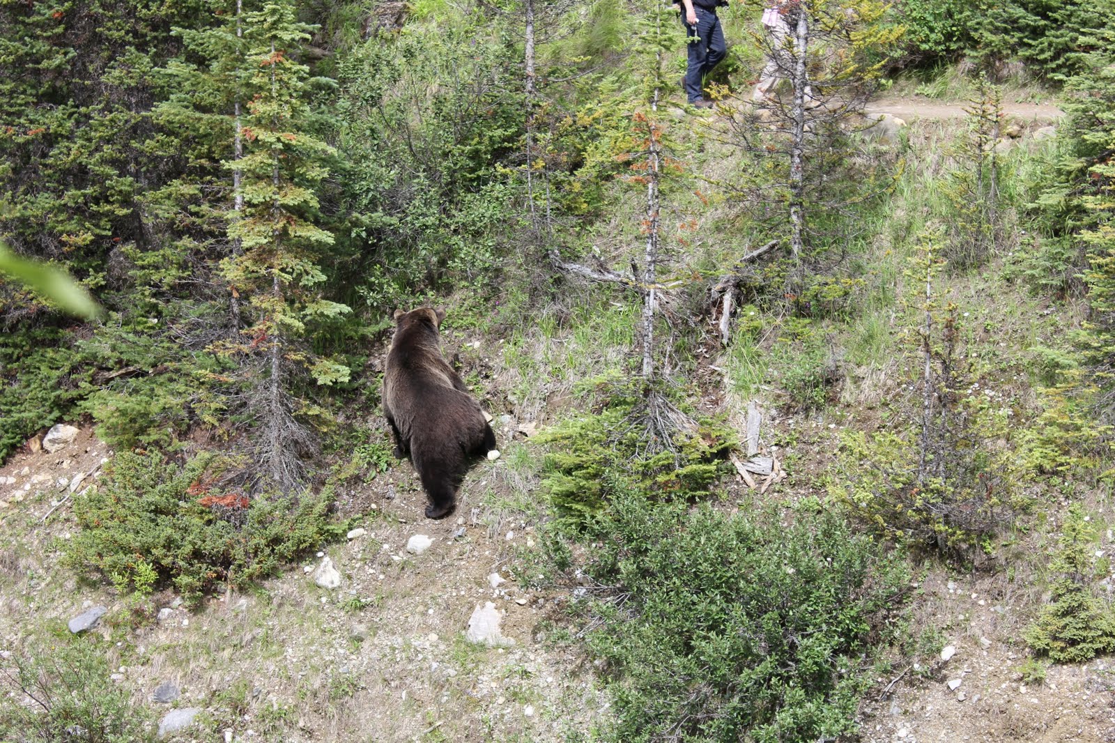 These people were completely oblivious to the fact the grizzly was only a few meters below them. Fortunately, it was not in a mood to fight and disappeared into the woods as fast as it could.